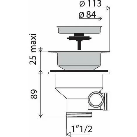 | CaractĂ©ristiques techniques : Bonde Ă panier pour tout type d’Ă©vier percĂ© en Ă 90 mm – Ăž113 mm sans trop plein :Â
