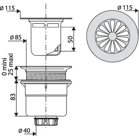 Sortie verticale ø40 à visser ou à coller, avec joint autofix.