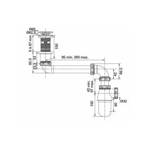 L’ensemble complet universel noir fait partie de la Factory Line de Valentin. L’équipement est composé d’une bonde universelle désoperculable pour s’adapter aux lavabos à trop plein intégrés. La bonde a une hauteur totale de 100 mm qui est recoupable à hauteur souhaitée. Elle peut s’ajuster à l’épaisseur de l’équipement de 5 à 87 mm. Le clapet en ABS noir est digiclic et mesure 65 mm de diamètre pour un orifice de 62, 5 mm. L’ouverture et la fermeture se font sur simple pression du doigt. La tubulure est ajustable de 95 à 260 mm pour convenir à toutes les installations. Le siphon ajustable lui aussi se déporte vers le mur pour gagner de l’espace sous la vasque et ainsi gagner de la place en rangement ou pour le passage d’un fauteuil roulant. Le débit est de 33 l/mn.