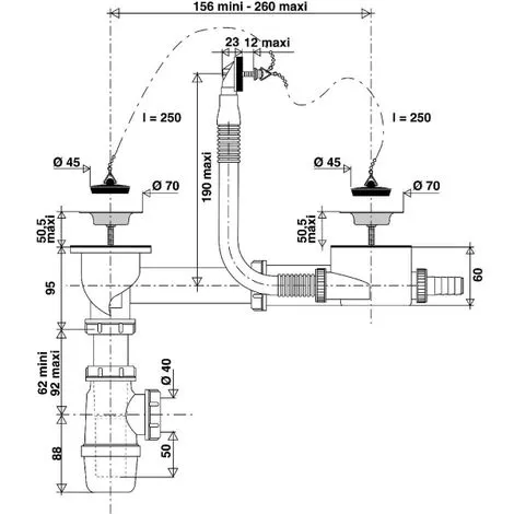 CaractĂ©ristiques : Type : Vidage complet – Type d’utilisation : Evier – Diamètre (mm) : 70 – NF : 1 – Nombre de pièce : 1