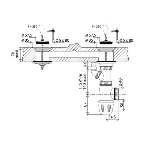- Caractéristiques: Siphon réglable, Deux bacs, Sortie machine à laver