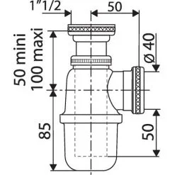 Siphon D’évier à Culot Laiton Brut – 1’1/2 – Ø 40 Mm – Valentin