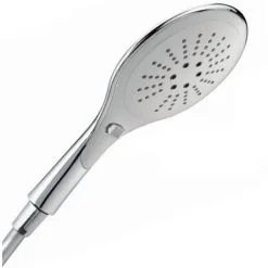 Pomme de douche 3 jets, large diamètre d’aspersion, système anti-calcaire, chromé et gris référence 92090000000.