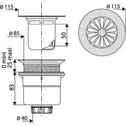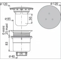| Siphon à cloison avec grille pour évier percé en Ø 60 mm, conditionnement sous coque