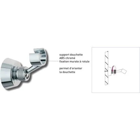 Cet accessoire permet de fixer une douchette au mur. Le support est en ABS et à rotule pour une flexibilité totale dans le positionnement de la douche.