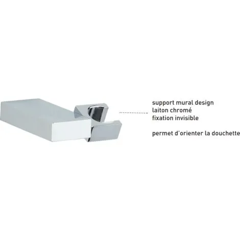 Support douchette mural rectangulaire articulé, fixation invisible, laiton chromé référence 00071200000.