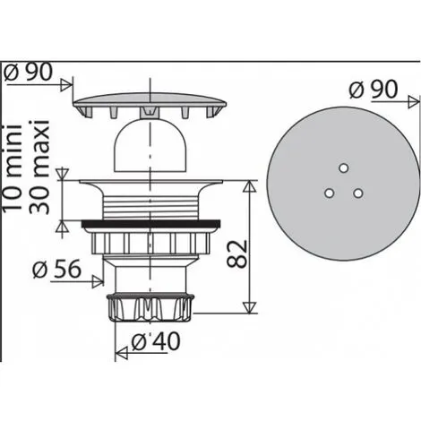 Bonde de douche pour receveur diamètre 60 mm – Capot métal diam 90