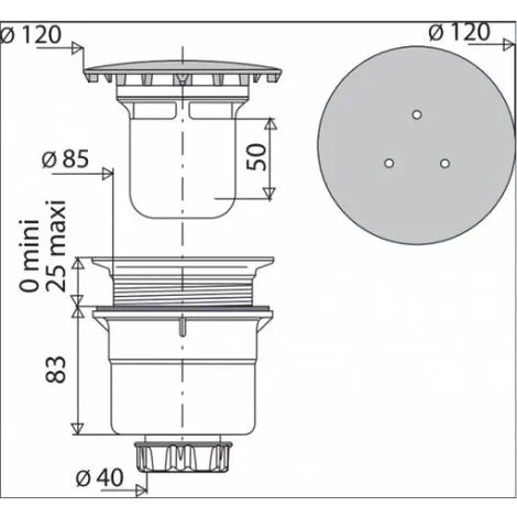 Bonde de douche pour receveur diamètre 90 mm Capot métal diam 120