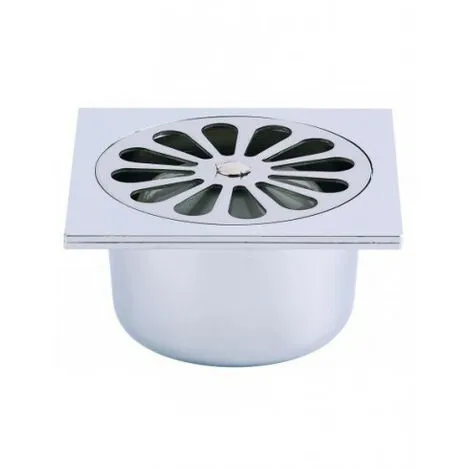 Ce siphon de sol est idéal pour une douche de plain pied, une lingerie ou un garage. La grille a une forme marguerite et est dotée d’une cloche. Elle a un diamètre de 85 mm. Le cadre est carré, les dimensions sont 100 x 100 mm. La sortie de ce siphon est verticale est à coller ou souder à un tube ou un coude, elle a diamètre de 40 mm. La hauteur totale de ce siphon de sol est de 50 mm. La garde d’eau faisant barrage aux mauvaises odeurs en provenance de la canalisation est de 33 mm.