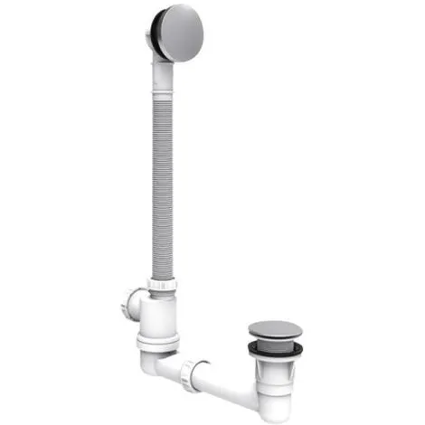 Vidage au pied baignoireVidage de baignoire à commande au pied Pediclic Clapet recouvrant en ABS chromé avec système d’ouverture au pied par clic. Siphon extra-plat. Trop plein flexible avec enjoliveur chromé. Sortie orientable 360° et ajustable en longueur 5 Ans Garantie